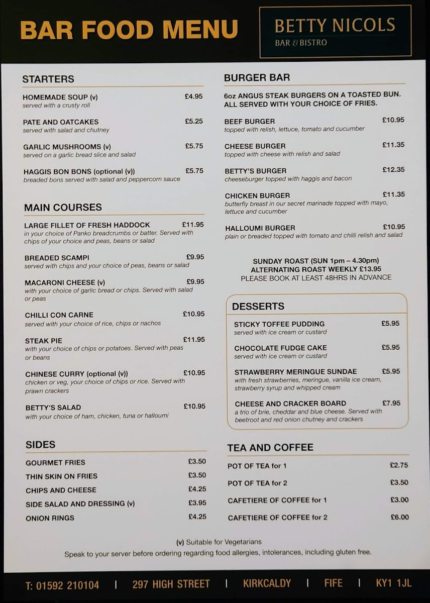Nestled in the heart of Kirkcaldy, Betty Nicols offers an enticing dining experience with a diverse menu that caters to a wide range of tastes. Known for its welcoming ambiance and attentive service, this charming eatery serves as an ideal spot for both casual meals and special gatherings.